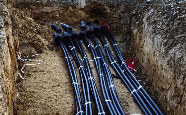 Expert installation of mains cabling from network pillars to metre boxes with correct segregation, depth, and protection to distributor standards.